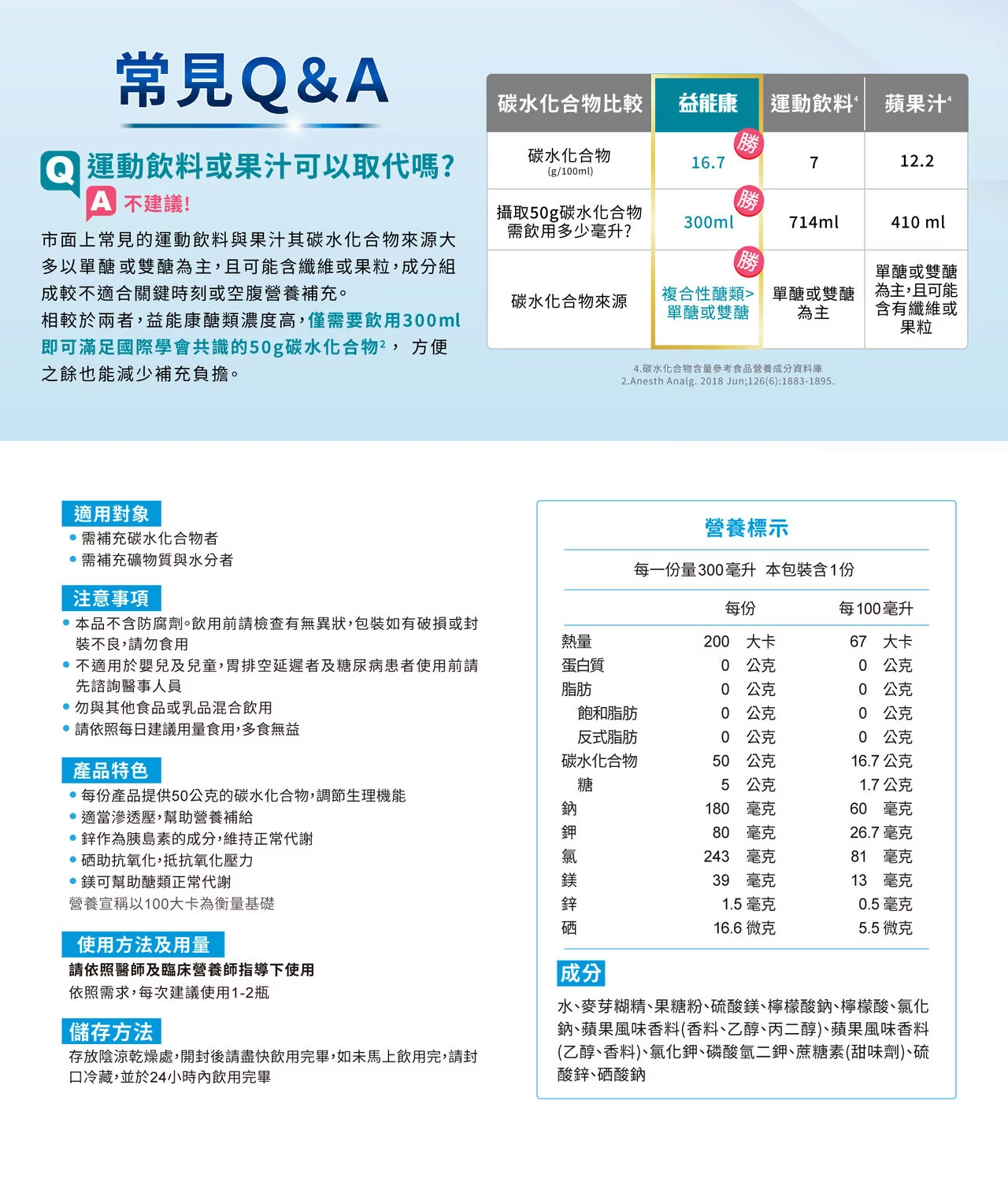 Efione益富 益能康碳水化合物補給飲 (蘋果風味) 300ml/24瓶/箱 (共24瓶,共1箱)