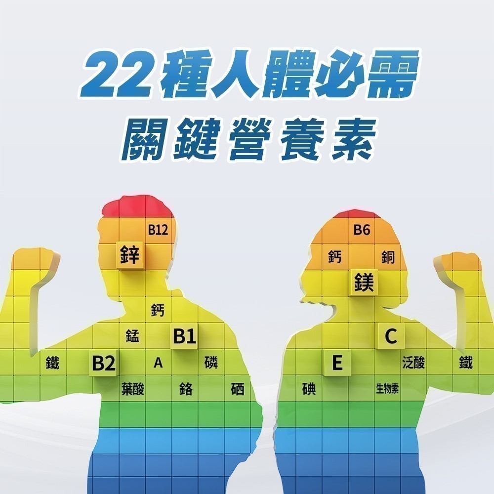 碳酸鈣(碳酸鈣、麥芽糊精)、磷酸氫鈣(無水)、乙酸dl-α-生育醇酯(維生素E) (維生素E、辛烯基丁二酸鈉澱粉、二氧化矽)、微結晶狀α-纖維素、抗壞血酸(維生素C) (維生素C、羥丙基甲基纖維素)、氧化鎂、聚乙烯聚吡咯烷酮、羥丙基甲基纖維素、菸鹼醯胺、丁烯二酸亞鐵、二氧化鈦、本多酸鈣、三氯化鉻(磷酸氫鈣(無水)、三氯化鉻)、硫酸錳、鹽酸吡哆辛(維生素B6)、氧化鋅、合成番茄紅素(蔗糖、明膠、玉米澱粉、合成番茄紅素、水、L-抗壞血酸棕櫚酸酯(抗氧化劑)、生育醇(維生素E) (抗氧化劑)、L-抗壞血酸鈉(抗氧化劑)、磷酸鈣)、膽鈣化醇(維生素D3)(辛烯基丁二酸鈉澱粉、蔗糖、L-抗壞血酸鈉(抗氧化劑)、中鏈三酸甘油酯、二氧化矽、生育醇(維生素E)(抗氧化劑)、維生素D3)、β-胡蘿蔔素(明膠、玉米澱粉、β-胡蘿蔔素、蔗糖、水、L-抗壞血酸鈉(抗氧化劑)、磷酸鈣、混合濃縮生育醇(抗氧化劑))、滑石粉、葉黃素(辛烯基丁二酸鈉澱粉、乾葡萄糖漿、蔗糖、葉黃素、L-抗壞血酸鈉(抗氧化劑)、水)、生物素(磷酸氫鈣(無水)、生物素)、硬脂酸鎂、二氧化矽、核黃素(維生素B2)、氰鈷胺明(維生素B12) (辛烯基丁二酸鈉澱粉、檸檬酸鈉、檸檬酸、二氧化矽、維生素B12)、硝酸硫胺明(維生素B1,硝酸噻胺)、聚糊精、麥芽糊精、維生素A醋酸鹽(辛烯基丁二酸鈉澱粉、完全氫化棕櫚油、維生素A醋酸鹽、海藻糖、玉米澱粉)、中鏈三酸甘油酯、硫酸銅、維生素K1(阿拉伯膠、維生素K1、蔗糖)、氧化鐵、葉酸、碘化鉀。