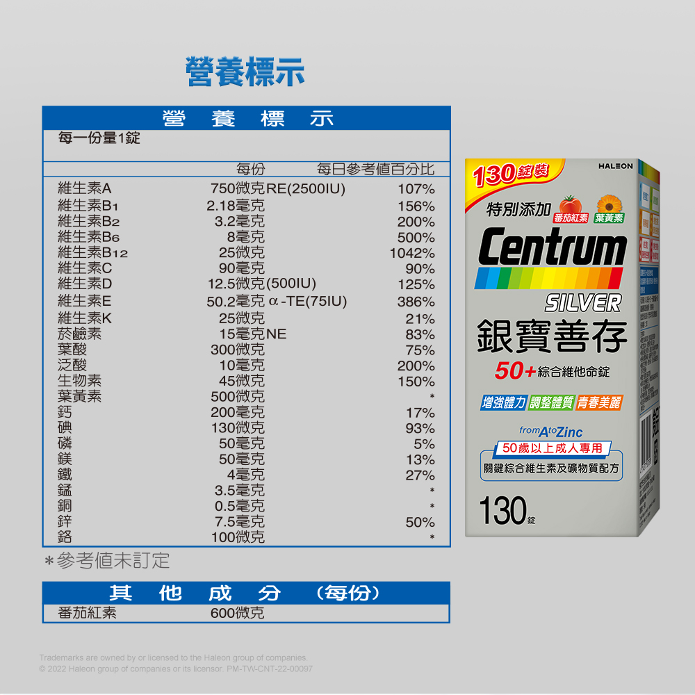 Centrum 銀寶善存50+綜合維他命 (130錠/盒)