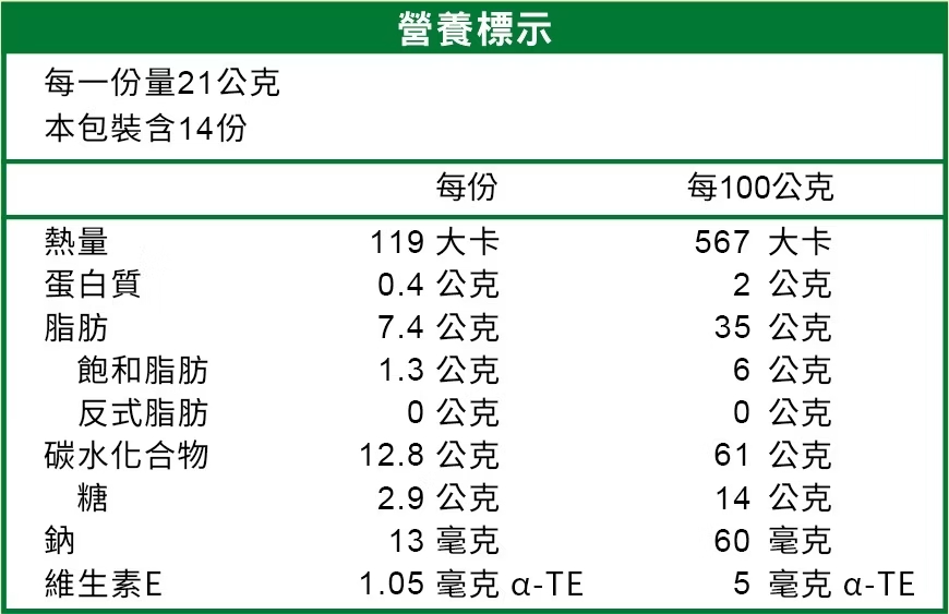 食用方式 : 3平匙( 約21公克)益補提供119大卡熱量。