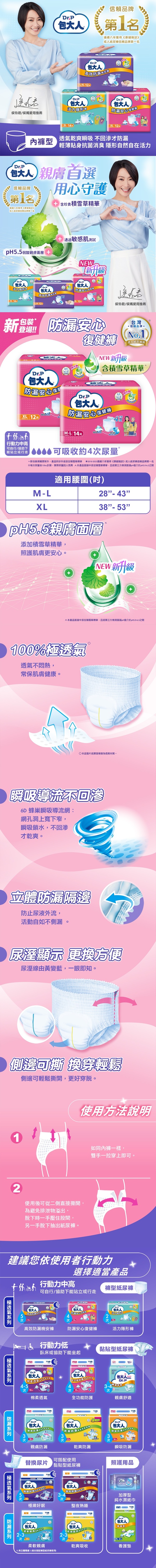 Dr.P 包大人褲型紙尿褲防漏安心復健褲 M - L (14片)